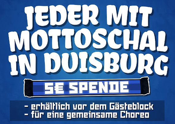 Am 03. November 2018 gastiert der amtierende Aufsteiger aus Paderborn beim MSV Duisburg. Die Supporters Paderborn rufen dazu auf, das Spiel im Duisburger Wedaustadion mit dem Kauf eines Mottoschals zu verbinden und so einen Teil zur dort geplanten Choreografie beizutragen.
