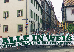 Bevor die Spielvereinigung Fürth morgen Erzgebirge Aue im heimischen Sportpark Ronhof empfängt, trifft sich die Kleeblatt-Fanszene ab 10:30 Uhr am Flussdreieck in Fürth. Von dort soll es später in einem Fußmarsch zum Stadion gehen, wo die Fürther Fans einheitlich in Weiß auftreten wollen.