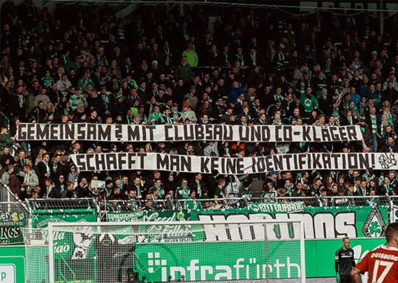 Fans der Spielvereinigung Fürth führten am vergangenen Sonntag anlässlich des Heimspiels gegen Hannover 96 einen Aktionsspieltag durch, mit dem nochmals die „Zurück zur SpVgg Fürth“-Forderung untermauert wurde. Begleitet wurde der Aktionsspieltag mit einer Plakataktion, einem Werbetrailer und einer Unterschriftenaktion.