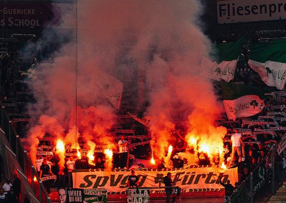 In der 2. Bundesliga trafen am vergangenen Montag die beiden gegen den Abstieg kämpfenden Vereine Erzgebirge Aue und Spielvereinigung Fürth aufeinander. Ultras der Spielvereinigung Fürth zeigten bei dem Auswärtsspiel im Erzgebirge nicht nur ein „50+1 muss bleiben!“-Plakat, sondern auch eine Pyroshow.