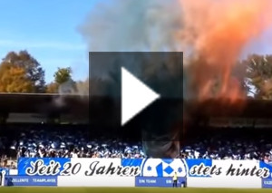 Die Blauen Bomber, Ultras der Stuttgarter Kickers, zeigten am Wochenende beim Heimspiel gegen Großaspach eine Choreografie zum 20. Geburtstag der eigenen Gruppe. Dabei wurden auch Rauchtöpfe eingesetzt. Der Verein ist deshalb enttäuscht.