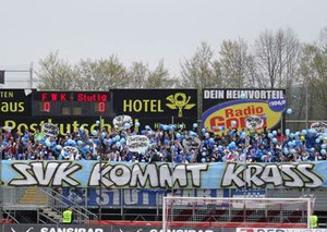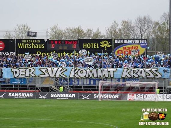 Die Fanszene der Stuttgarter Kickers reiste am Samstag unter dem Motto „Der SVK kommt krass“ zum Auswärtsspiel bei den Würzburger Kickers. Die Gästefans waren für die „Erkan & Stefan“ Mottotour Jogginghosen und Handtüchern bekleidet. Erkan und Stefan bliebe die Mottotour nicht verborgen.