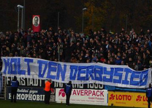 Weil Babelsberg 03 für die Vorfälle beim Spiel gegen Energie Cottbus mit einer höheren Strafe belegt wurde, als die Gäste und rassistische Vorfälle der Gästefans bis heute nicht geahndet wurden, will Babelsberg 03 die Geldstrafe des Nordostdeutschen Fußballverbands (NOFV) nicht zahlen (Faszination Fankurve berichtete).