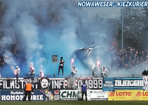 Die Babelsberg 03 Fangruppe „Sektion Nord“ leitete das Heimspiel gegen Carl Zeiss Jena mit einer Pyroshow ein, mit der die Gruppe ihren fünften Geburtstag feierte. Der Nowaweser Kiezkurier hat ein Video dazu veröffentlicht und zeigt erstmals seit Jahren wieder bewegte Bilder aus der Babelsberger Fanszene.