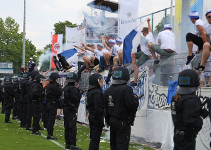 Im Achtelfinale des brandenburgischen Landespokals kam es am vergangenen Samstag in der Orafol-Arena zur Partie Oranienburger FC Eintracht gegen den SV Babelsberg 03. Die mitgereisten Babelsberger Ultras leiteten die Partie mit Pyrotechnik ein. Nach einer Stunde kam es zu Tumulten.