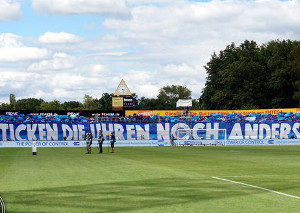 15.410 Zuschauer kamen am vergangenen Samstag ins Stadion am Böllenfalltor um die Zweitligapartie zwischen dem SV Darmstadt 98 und dem 1. FC Magdeburg zu gucken. Die Lilienfans zogen vor Anpfiff die größte Blockfahne hoch, die es auf der Gegengerade in Darmstadt je zu sehen gab.
