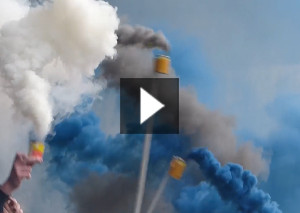 Die Fanszene vom SV Darmstadt 98 organisierte zum gestrigen Auswärtsspiel bei Eintracht Braunschweig, wie angekündigt, eine Auswärtstour, die die Neunzigerjahre zum Motto hatte. Zu der Aktion wurde im Gästeblock des Eintracht-Stadions eine Pyroshow gezeigt.