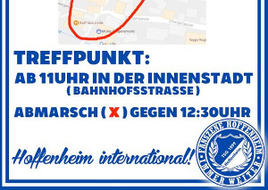 Seit dem vergangenen Wochenende steht fest, dass die von zahlreichen aktiven Fanszenen kritisierte TSG Hoffenheim erstmals in der Vereinsgeschichte im Europapokal antreten wird. Die Anhänger des Clubs von Mäzen Dietmar Hopp veranstalten zu diesem Anlass einen Marsch.