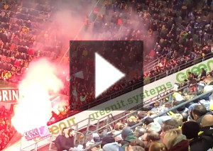 Anhänger der TSG Hoffenheim zeigten gestern im Gästebereich des Dortmunder Westfalenstadions eine Pyroshow und vermummten sich unter ausgebreiteten Schwenkfahnen. Während der Aktion schritten Ordner und im Nachgang sogar behelmte Polizisten ein, um Pyrozünder zu ermitteln.