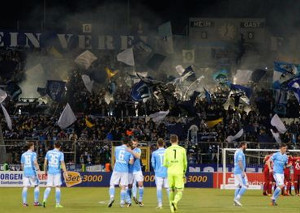 Am 27. Spieltag der Regionalliga Bayern war am vergangenen Freitag der SV Seligenporten beim Spitzenreiter TSV 1860 München im Grünwalder Stadion zu Gast. Die Ultras der Löwen leiteten die Partie mit einer Pyroshow in der Westkurve ein. So wurden vor Anpfiff blinkende Stroboskope gezündet.