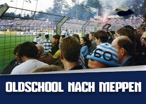 Im Rahmen der Old School-Mottofahrt der TSV 1860 München-Fanszene nach Meppen zeigten die Löwenfans gestern im Gästeblock des Emslandstadions eine Choreografie und eine Pyroaktion. Auch die Fanszene des SV Meppen organisierte zum Anpfiff eine Choreografie.