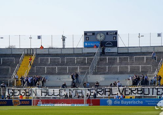 Am vergangenen Samstag wurden das Stimmungszentrum im Herzen der Westkurve des Grünwalder-Stadions aus Protest gegen vom eigenen Verein verhängte Materialverbote bis zum Anpfiff leer gelassen. Dies sorgte innerhalb des 1860 München-Fanlagers für reichlich Diskussionen.