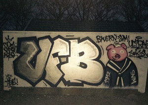 Heute zeigen wir Streetart-, Graffiti- und Aufkleber-Fotos aus der Feder der Fanszene des VfB Oldenburg. Stromkästen, Windräder, Brücken und Schallschutzwände sind mit „VfB“ Schriftzügen, dem Namen der Ultràgruppe Commando Donnerschwee oder mit Sticheleien gegen Meppen markiert.
