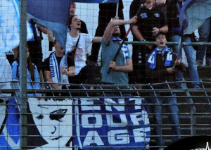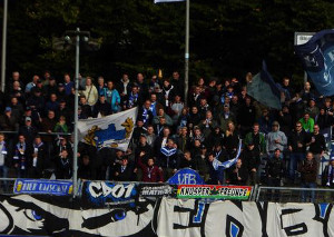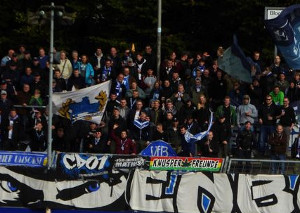 Ultras des VfB Oldenburg brachten beim gestrigen Regionalliga Nord Auswärtsspiel bei Hannover 96 II den Gästeblock des Eilenriedestadions mit Stroboskopen zum Blinken. Während der Pyroshow wurden zudem blaue und weiße Plastik-Fähnchen geschwenkt.