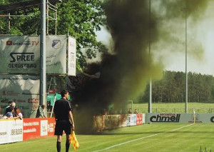 Weil Fans des VFC Plauen am vergangenen Sonntag in der 2. Halbzeit des Auswärtsspiels im Sportpark Krieschow schwarzen und gelben Rauch zündeten, sollen die VFC-Fans vom dortigen Ordnungsdienst angegriffen worden sein. Die Ordner sollen dabei einen Kopfstoß und zwei Schläge ins Gesicht verteilt haben.