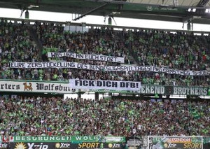 Am gestrigen Abend hat sich die aktive Fanszene des VfL Wolfsburg zu Wort gemeldet und von einem neuen Tiefpunkt im Verhältnis zur VfL Wolfsburg Fußball-GmbH berichtet. Für schlechte Stimmung in Wolfsburg sorgt u.a. ein Stadionverbot auf Bewährung für den Vorsänger der Nordkurve.