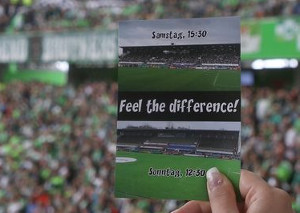 Die Fanszene des VfL Wolfsburg nutzte den bundesweiten Aktionsspieltag für den Protest gegen die zerstückelten Anstoßzeiten in der Bundesliga, die Probleme für Amateurvereine mit sich bringen. Spontan schlossen sich mehrere Amateurclubs aus dem Umland von Wolfsburg den Protesten an.