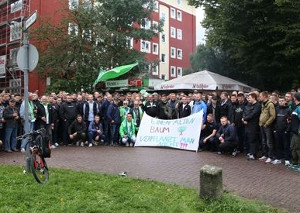 Fans des VfL Wolfsburg fuhren gestern in einem Buskonvoi zum DFB-Pokalspiel ins Niedersachsenstadion nach Hannover. Gekleidet waren die Gästefans dabei, wie zu erwarten, in einheitlichen Mönchskutten mit dem alten Vereinswappen des VfL Wolfsburg.