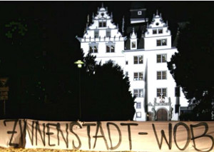 Auf dem Weg zur Arbeit sahen die Einwohner von Wolfsburg am Montag zahlreiche Spruchbänder, die das Stadtbild von Wolfsburg prägten. VfL Wolfsburg-Fans forderten darauf den eigenen Verein auf, zum alten Vereinswappen mit den Zinnen zurückzukehren. An über 30 Standorten waren verschiedene Plakate zu sehen.