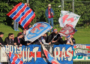 Die Fans des Wuppertaler SV organisierten gestern eine Schifffahrt zum Spiel beim MSV Duisburg II im Wedaustadion. Im dortigen Gästeblock wurde eine Pyroshow und eine „Oberligameister“ Fahne gezeigt und nach dem 1:1 ausgiebig mit der Mannschaft gefeiert.